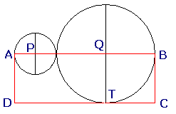 In figura P e Q sono i centri di due circonferenze tangenti esternamente e la retta PQ taglia le le due circonferenze in A e B. ABCD e' un rettangolo di area pari a 15.